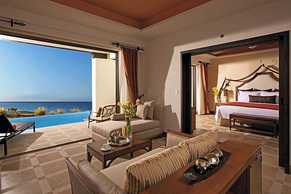 MASTER SUITE SWIM OUT OCEAN FRONT is 1163 square feet and includes a king-size bed 150-183 width plus living room, terrace, desk, cable tv, hairdryer, tea and coffee making facilities , ironing set, safe, bathrobes, and slippers.